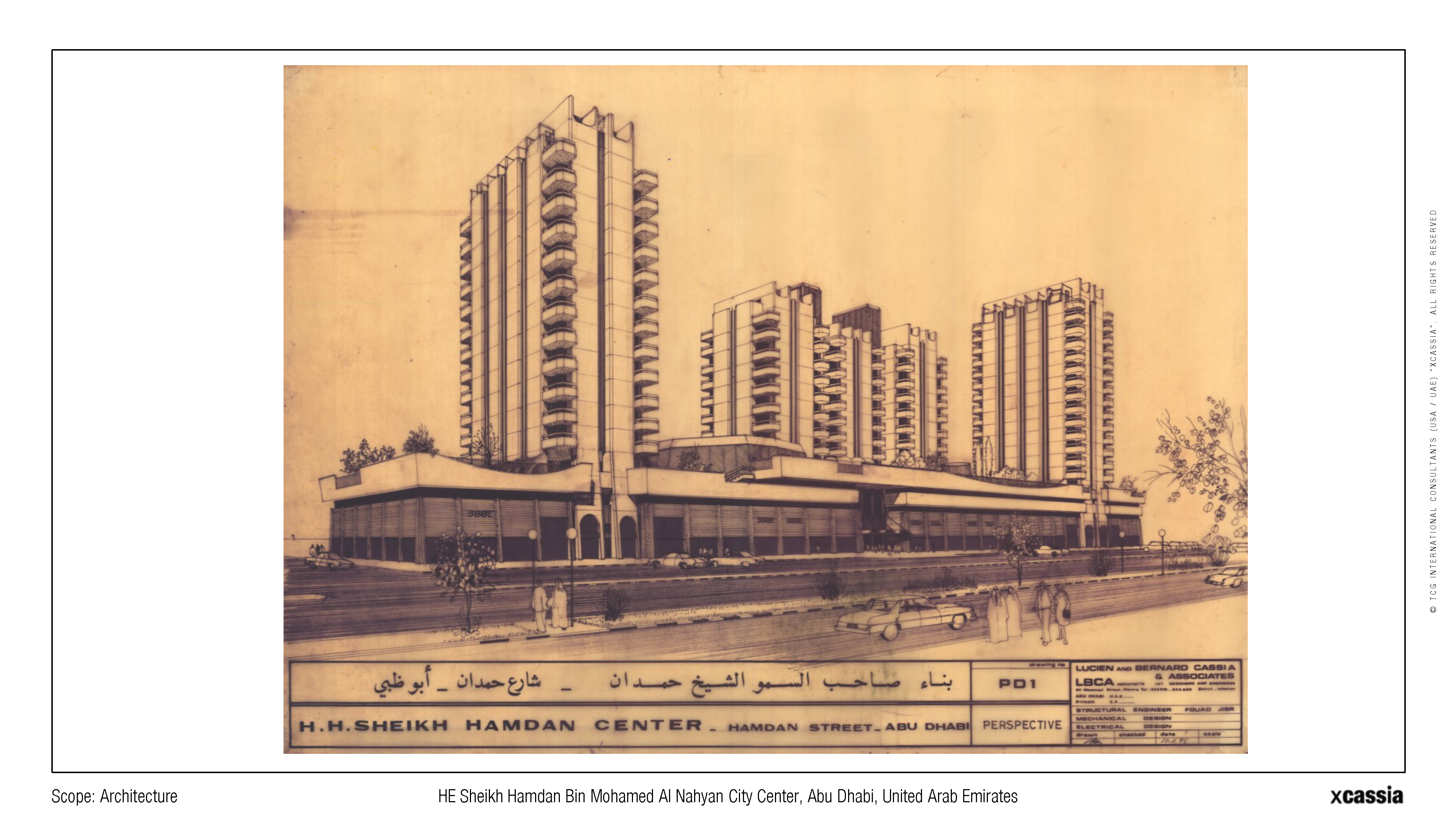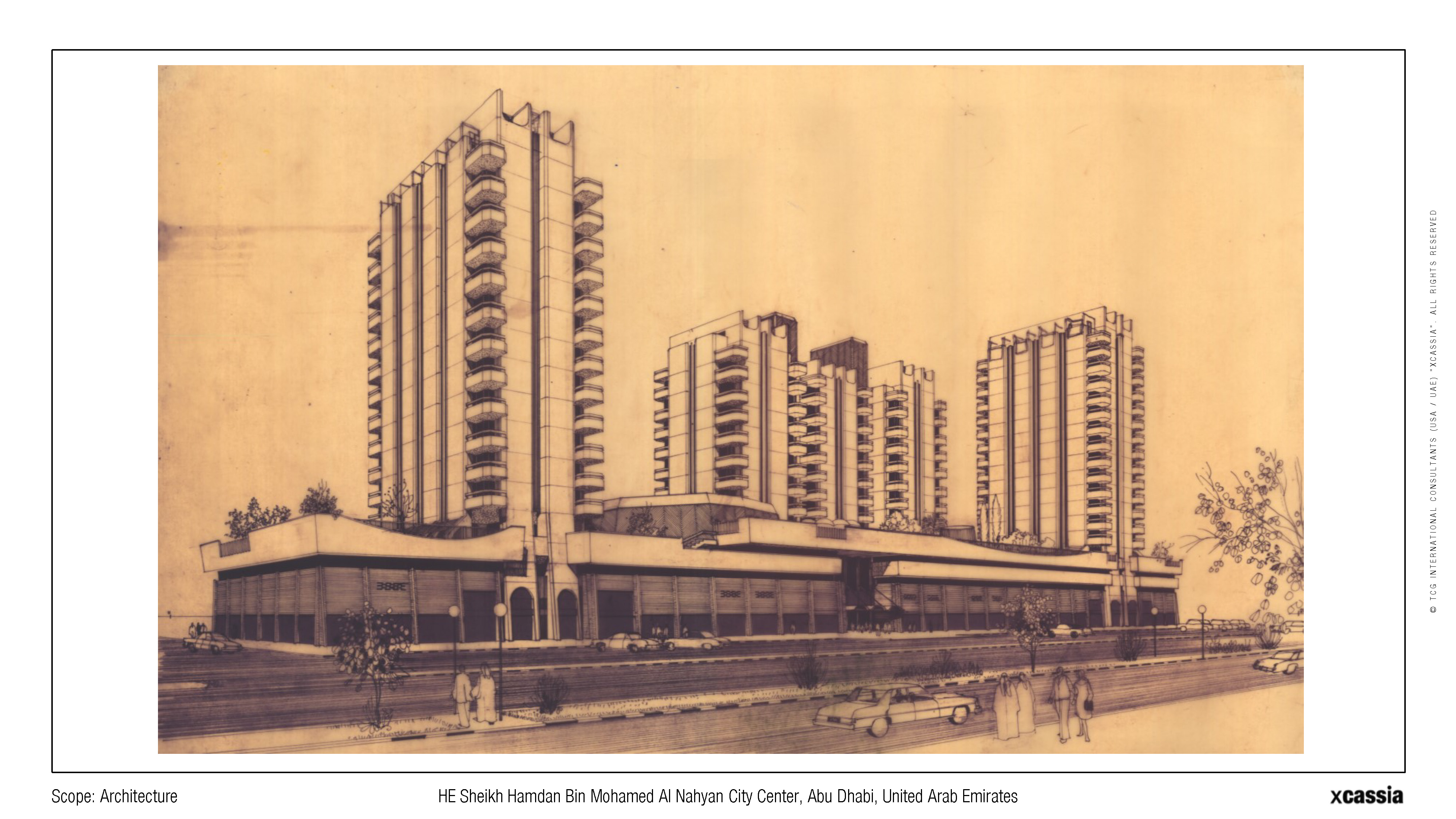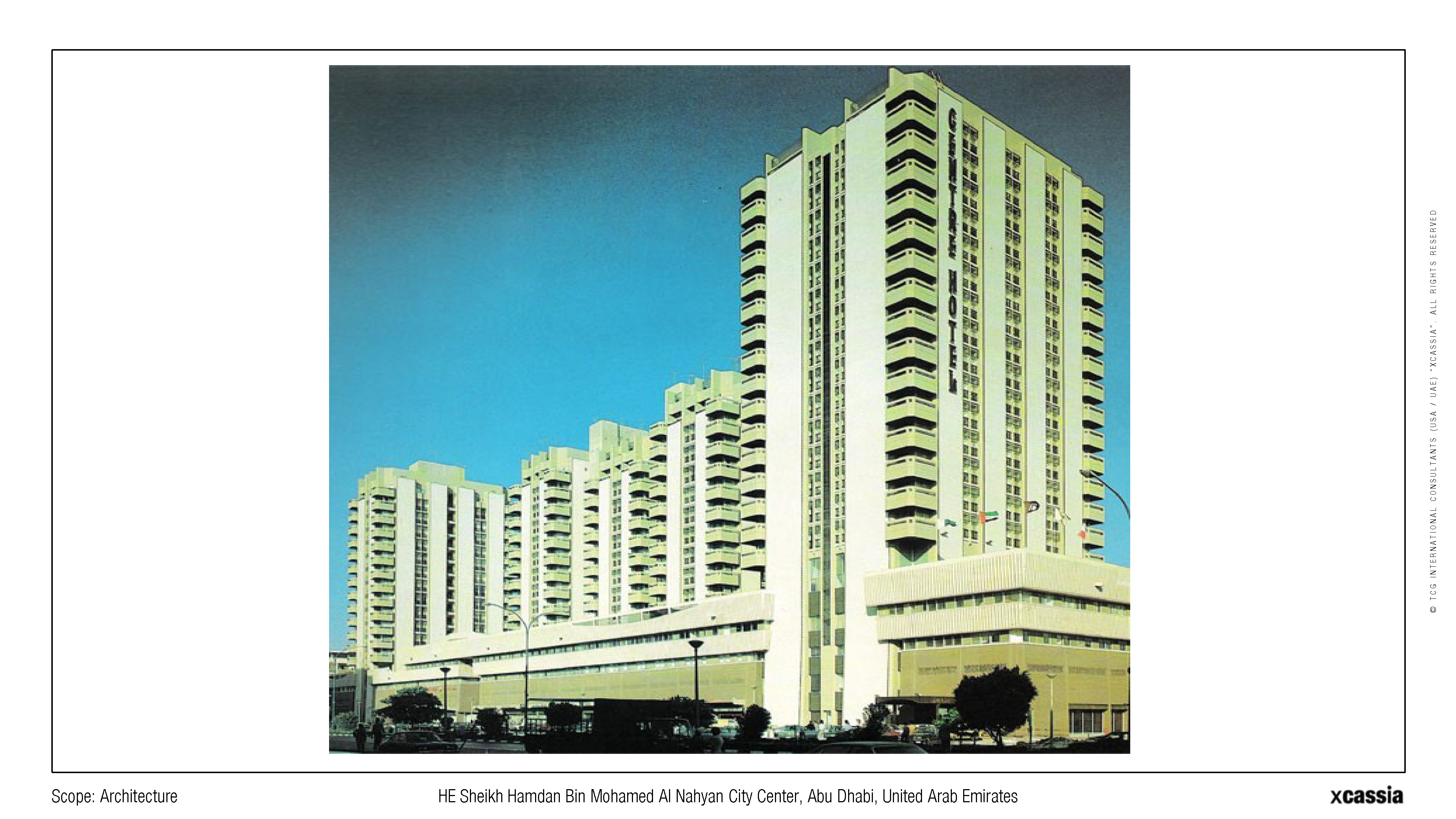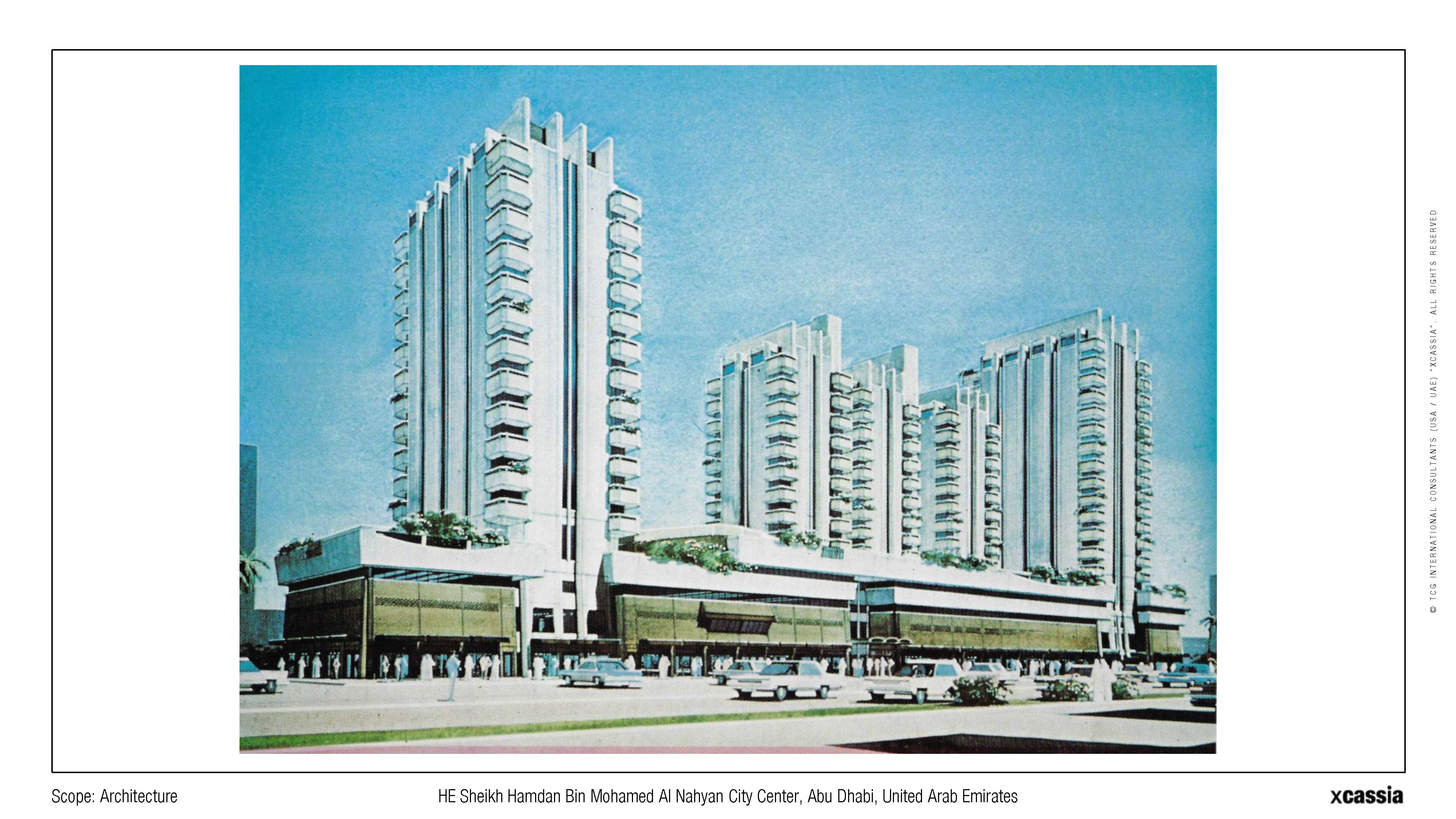 Being one of the first and largest business and commercial centers in the United Arab Emirates, this development holds a prominent location on Abu Dhabi's "Sheikh Hamdan Street," occupying an entire block. The project was conceived to integrate residential apartments and a hotel while accommodating the commercial nature of the street, necessitating the inclusion of a spacious shopping mall.