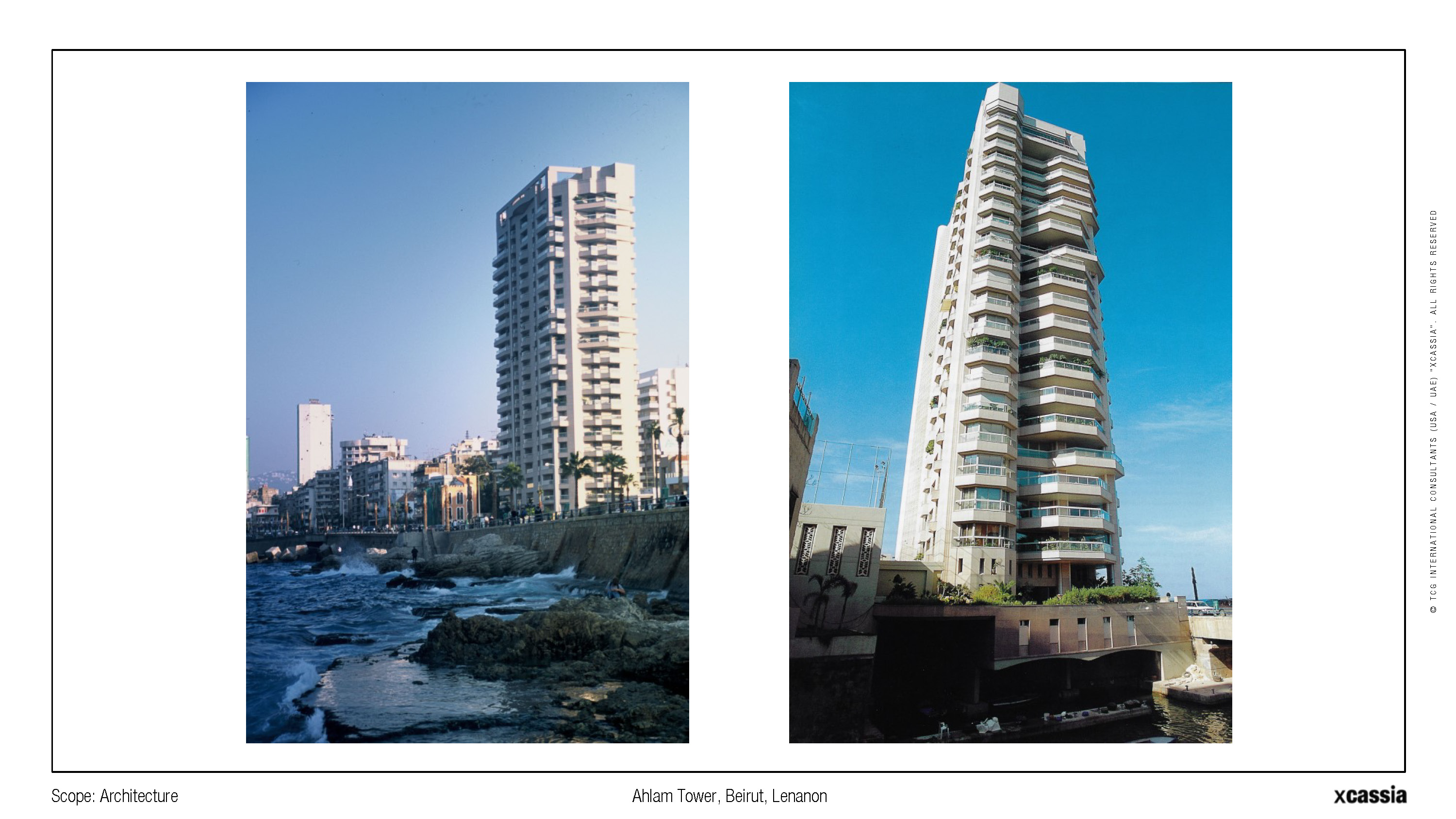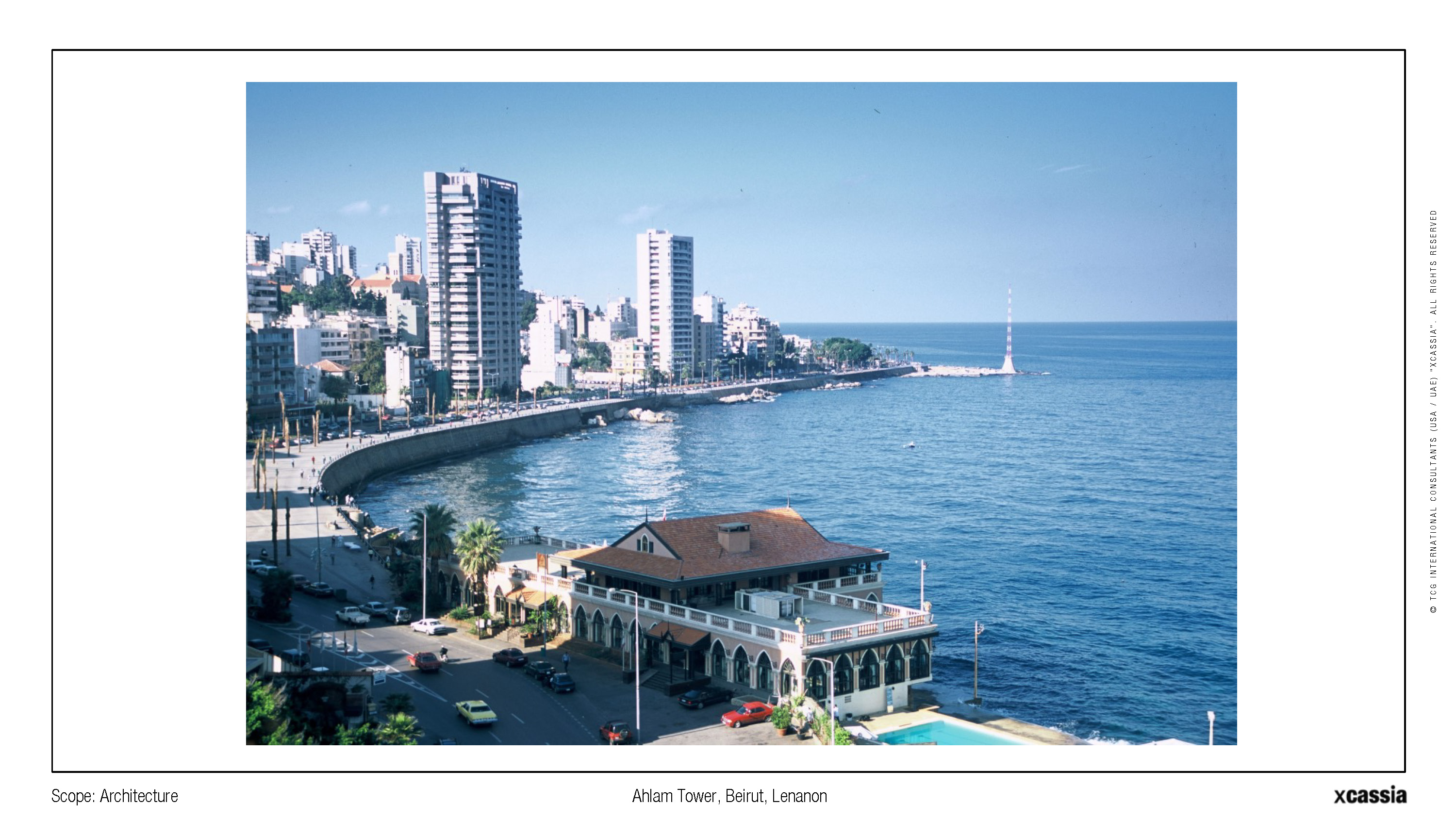 Al Ahlam Tower, translating to "The Building of Dreams," is a 20-story residential structure located in Beirut's Ain el Mreisseh district. Each floor encompasses approximately 900 square meters, offering residents panoramic views of the Mediterranean Sea and the Beirut coastline. The tower is situated on a prominent corniche, ensuring that these vistas remain unobstructed.